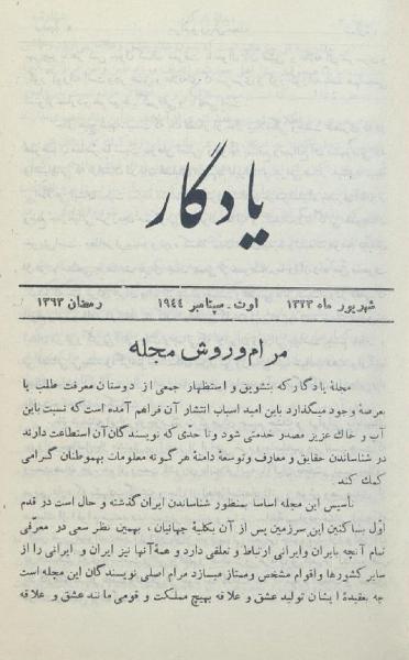 دانلود ارشیو نشریه یادگار به صاحب امتیازی عباس اقبال آشتیانی
