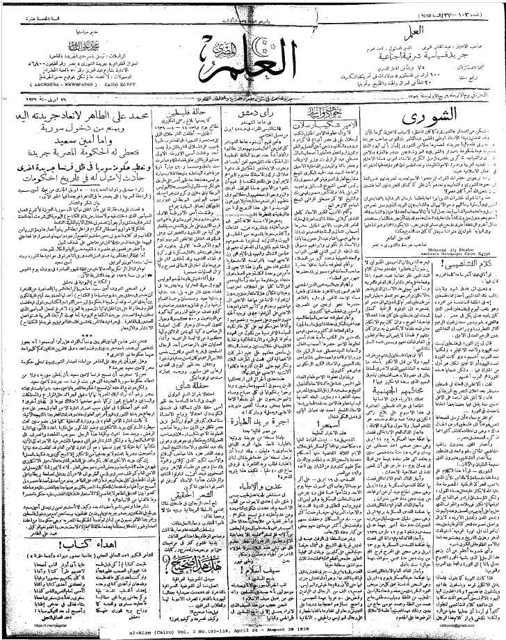 دانلود ارشیو نشریه العلم المصری به صاحب امتیازی محمد علی الطاهر