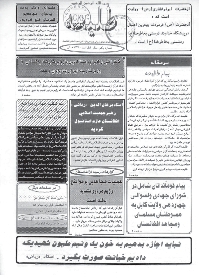 دانلود ارشیو نشریه طلیعه به صاحب امتیازی حزب جمعیت اسلامی افغانستان
